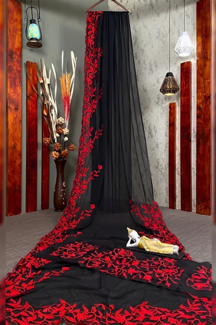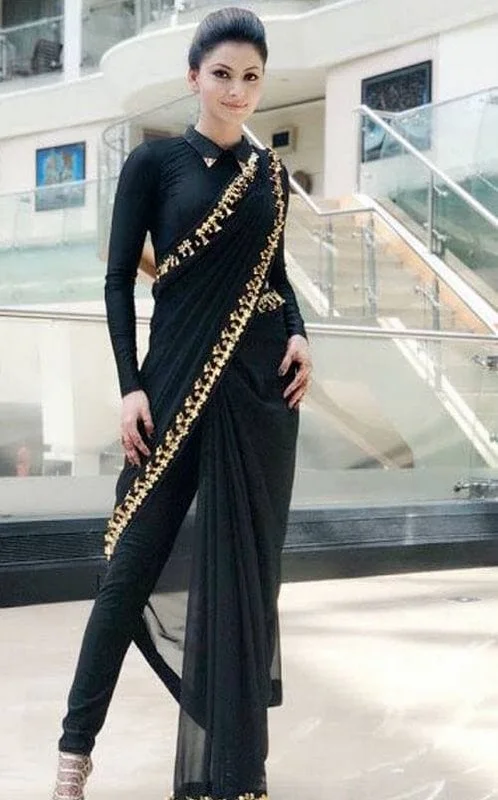 Black Saree with Lace Work Rashmika Mandanna Style Georgette