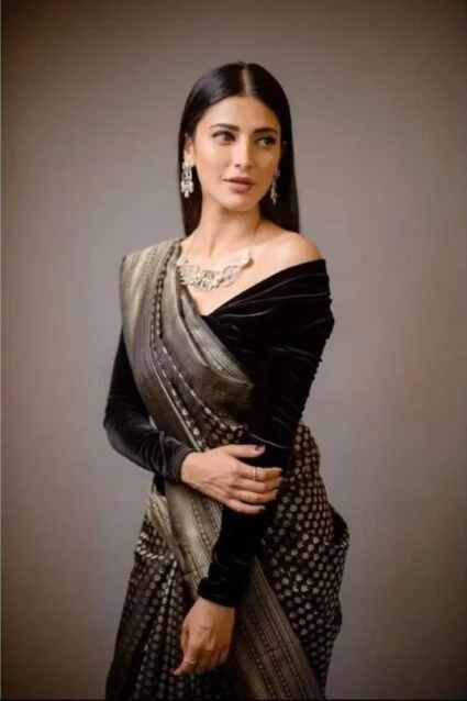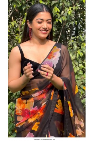 Black Saree with Lace Work Rashmika Mandanna Style Georgette. Rashmika Mandanna never neglects to leave us staggered each time she swaggers out. With these trendy and chic blouse designs from her wardrobe, you can accentuate your saree looks with fashion inspiration from the “Animal” actor.