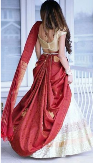 Drape Saree In Lehenga Trend 2024-25 Style In Different Ideas. Hanging a saree in different styles has been an immortal pattern. The draping of sarees is available in a variety of styles due to the diversity of cultures and regions. One well known pattern that has charmed ladies is the combination of wearing a saree or half saree in a lehenga style. In this blog, we will investigate three extraordinary ways of hanging a saree in a lehenga or half saree lehenga style, alongside the moves toward accomplish this popular look
