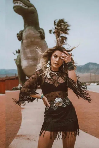 When you’re wearing a loud and bold outfit like this one with zebra print below, keep your jewelry simple and minimal. You get a chic look thanks to the gold tribal hoops’ simplicity, which complement this stunning two-piece in a tasteful way. Because there is so much that can go with it, boho-inspired tribal jewelry is such a fun piece to wear and so simple to style! Wear a dress like the one below with your necklace and earrings. Conflictingly, wear it with a basic tank top, tore pants, and a long kimono to give your look a bohemian touch!